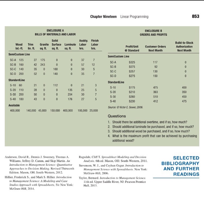 Solved 852 Chapter Nineteen Linear Programming Case Custo Chegg Com